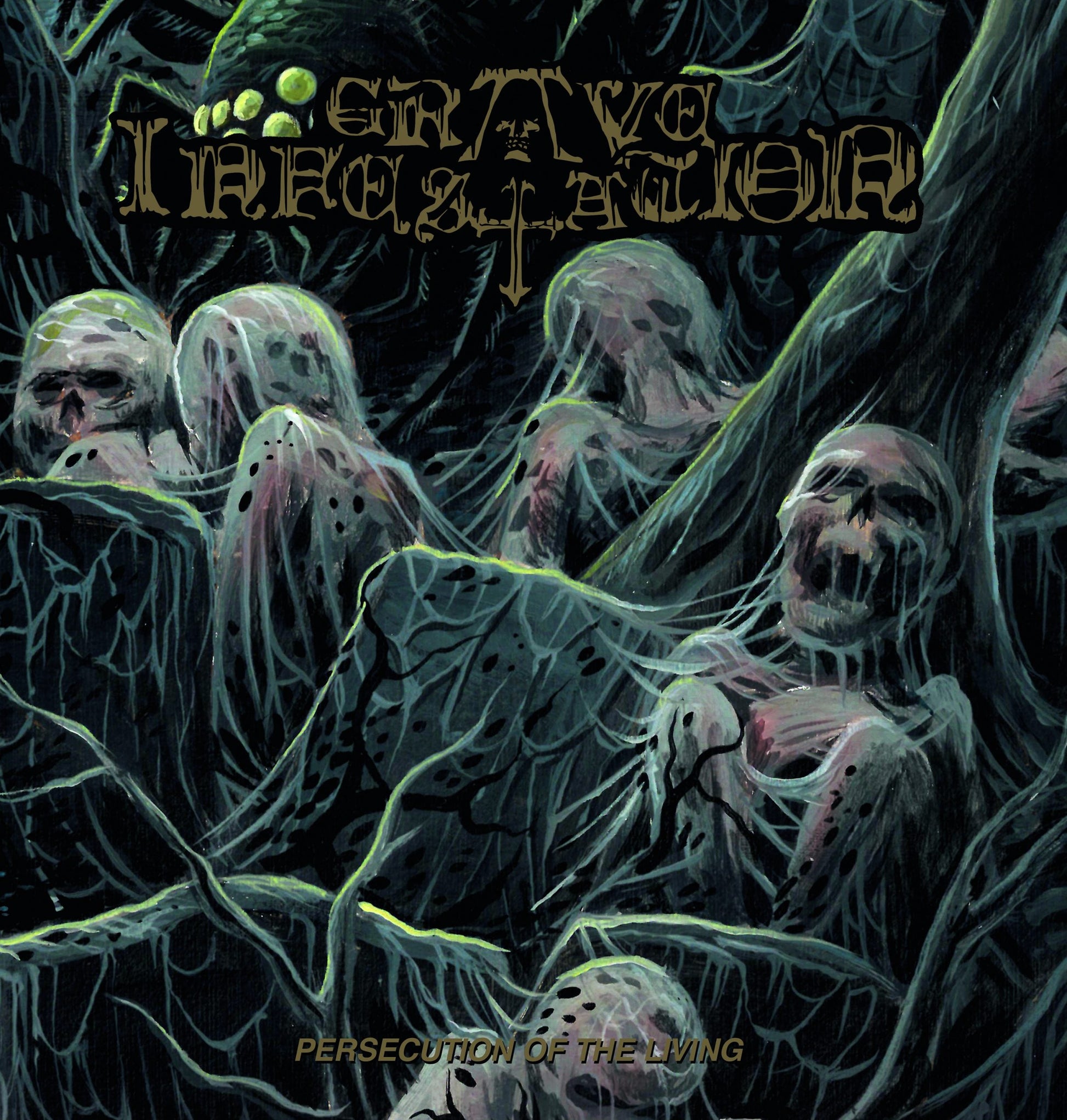 Alas, as doom enveloped the earth, GRAVE INFESTATION was lurking in wait, brewing their full-length debut. And it arrives with the force of a nuclear payload in the form of Persecution of the Living. Reprising a couple re-recorded songs from the preceding demo, the presciently titled Persecution of the Living wastes no fucking time in getting in and absolutely flaying the listener alive. The foundation remains much the same - from the malignant tendrils Morbid Angel cast across the Tampa scene to the buzzsaw bulldoze of the contemporaneous Swedish scene, the ancient foundation of Necrovore, Repulsion, and Sadistic Intent to Carcass' godly first two albums - but GRAVE INFESTATION exhibit a frightening clarity in their jackhammering attack. Some could call it a "clean(er)" iteration of their strident sound; others might view that cauldron with focus and finesse, as eerie melodies occasionally bubble up from the muck; but whatever tag you put on it, Persecution of the Living represents a professional-yet-powerful statement to the wider metal world. Darkness, death, DOOM: herald the grand arrival of GRAVE INFESTATION!